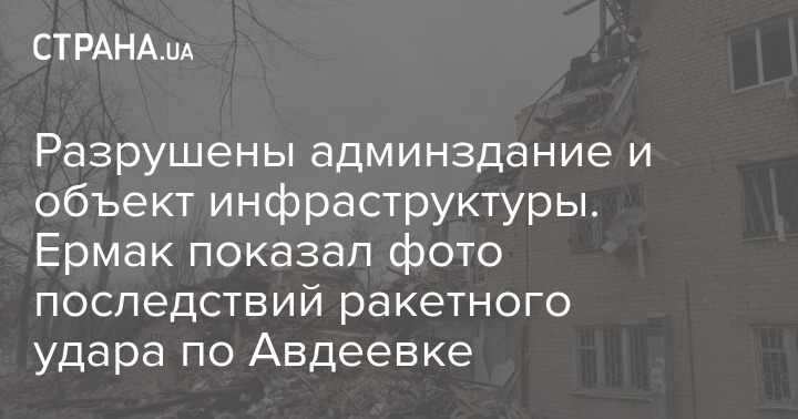Разрушены админздание и объект инфраструктуры. Ермак показал фото последствий ракетного удара по Авдеевке