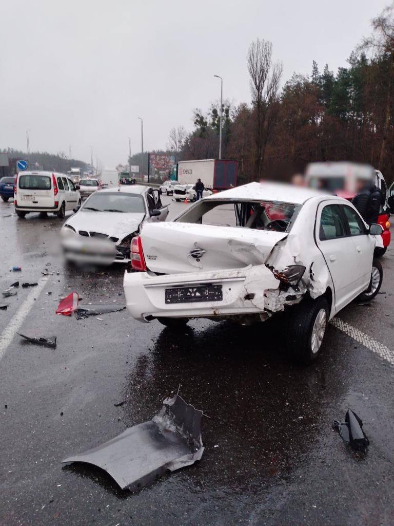 08.55 ДТП на Житомирской трассе произошло возле Капитановки. В него попали 10 транспортных средств.
