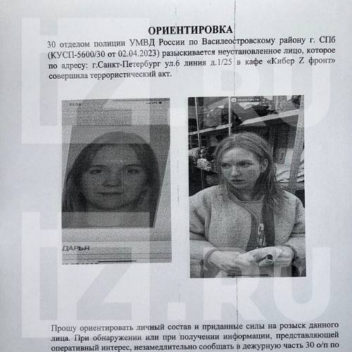 Вечером в воскресенье была установлена личность подозреваемой в убийстве военкора Владлена Татарского в Петербурге.