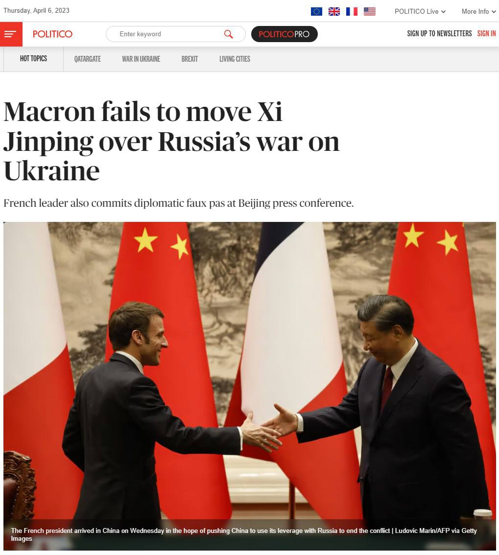 Макрону не удалось переубедить Си Цзиньпина в его видении войны в Украине - Politico
