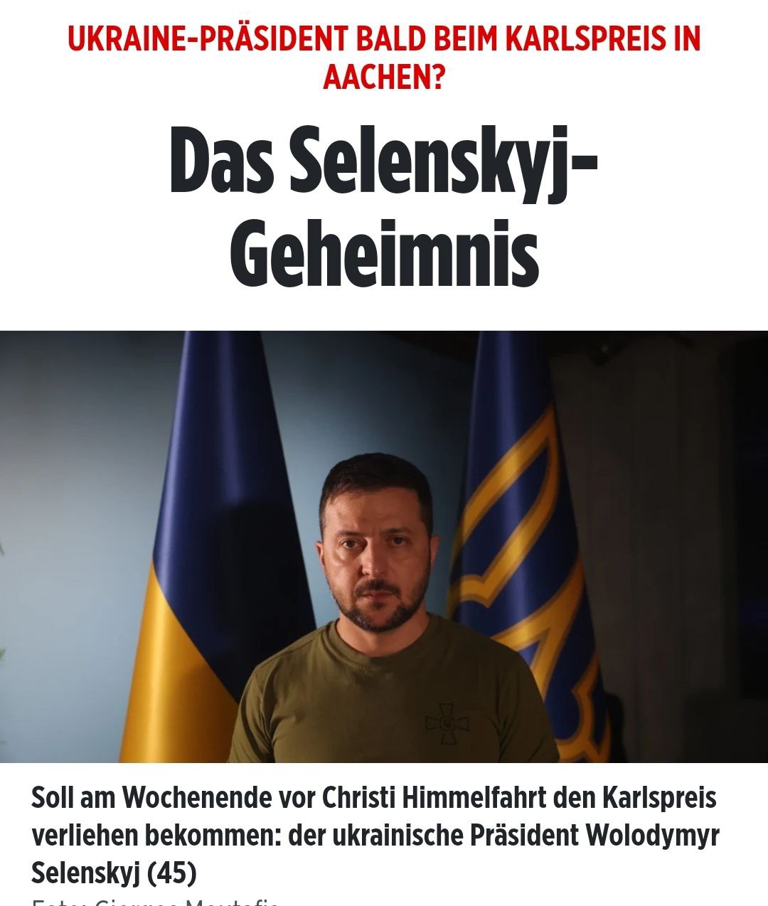 09.56 Зеленский может в следующем месяце приехать с визитом в Германию, где ему вручат премию Карла Великого, пишет Bild.