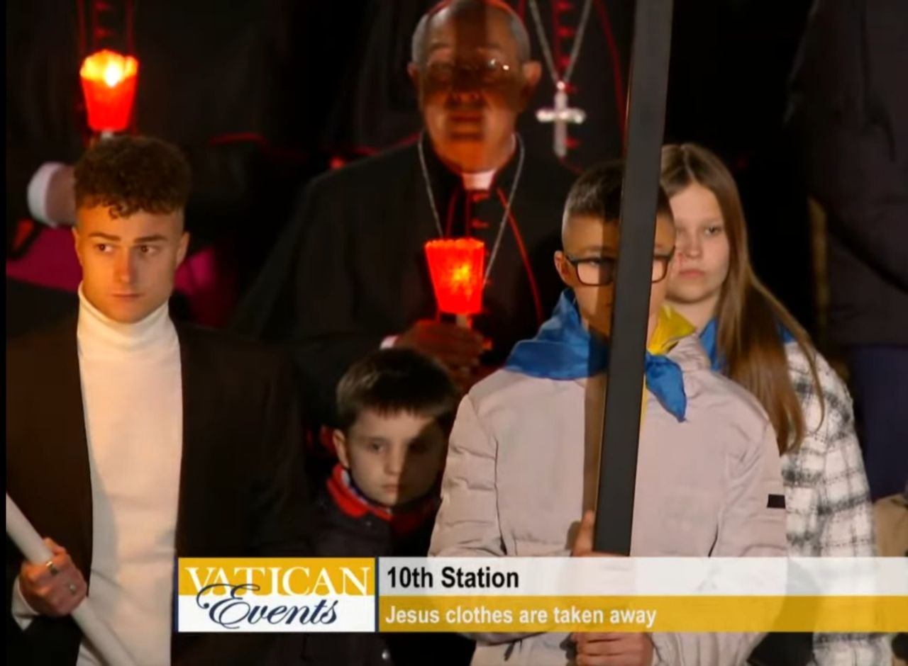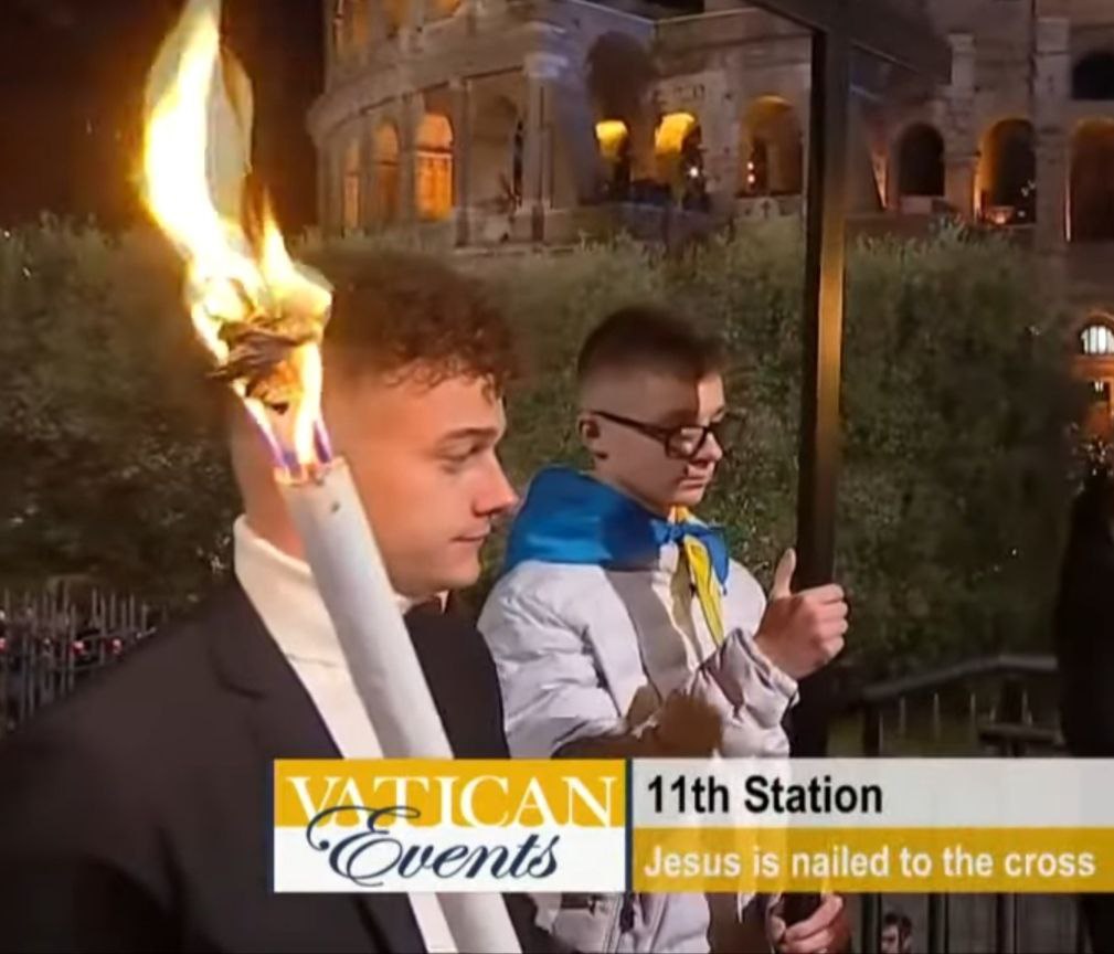 Вчера в Риме состоялся крестный ход на католическую Страстную Пятницу (она проходит на неделю раньше православной). Там, среди прочих, крест пронесли украинец и россиянин, которых поставили в процессию рядом.