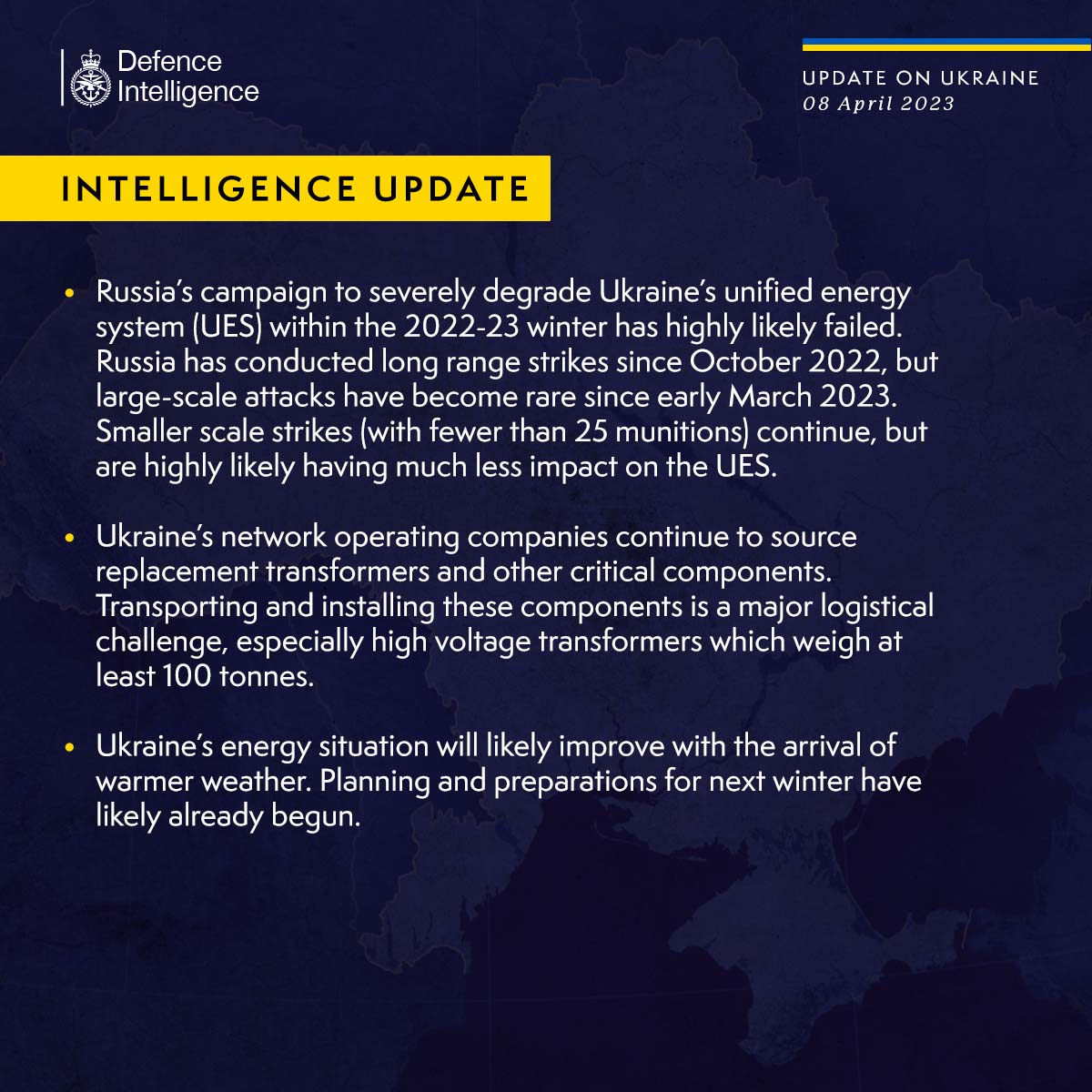 Британская разведка пишет, что России за осень и зиму не удалось довести до коллапса объединенную энергосистему Украины, эту кампанию сейчас фактически свернули.