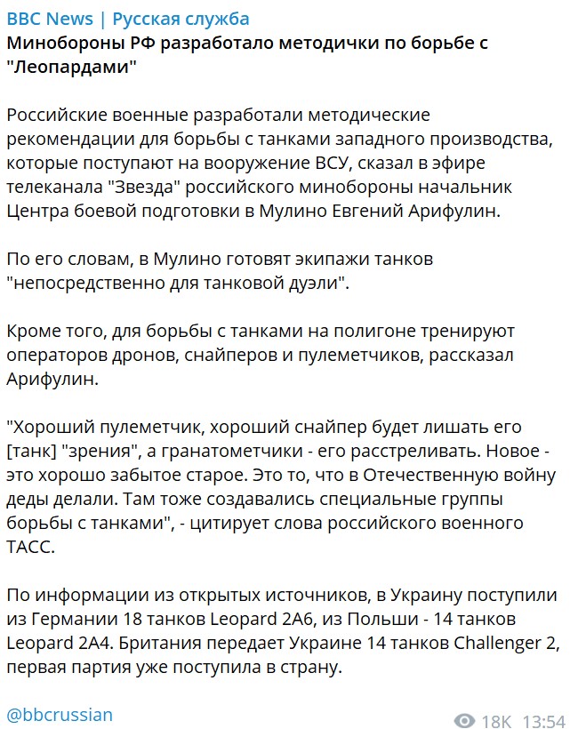Российское Министерство обороны разработало методички по борьбе с танками "Леопард".