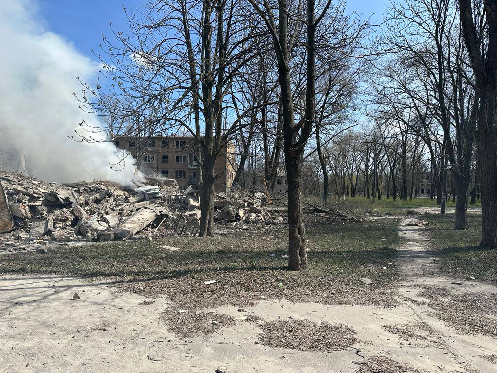 Российские войска утром в понедельник, 10 апреля, обстреляли Авдеевку Донецкой области. В результате был полностью разрушен жилой дом на несколько этажей.