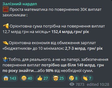 В госбюджете Украины нет денег на возвращение доплат военным в тылу по 30 тыс. гривен, за что вчера проголосовала Верховная Рада. На эти цели нужно найти еще около 149 миллиардов гривен в год, что составляет 98% от всей необходимой суммы.