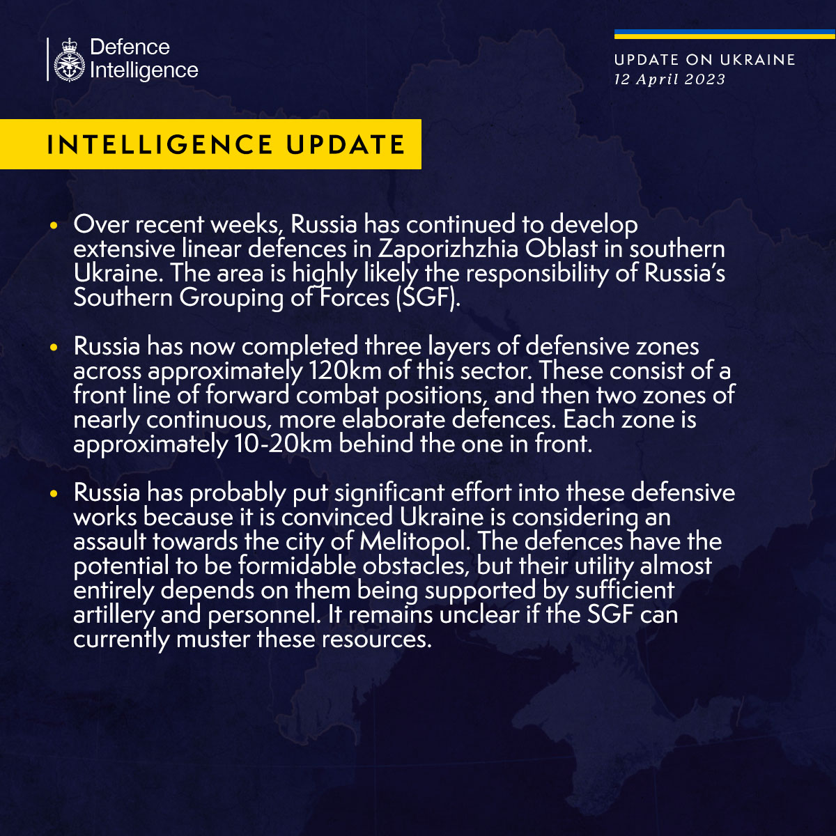 Британская разведка сообщает, что Россия, вероятно, вложила значительные ресурсы в эти оборонительные сооружения, поскольку считает, что ВСУ планируют контрнаступление на Мелитополь.