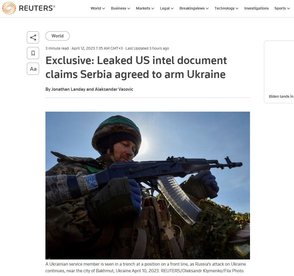 В документах "утечки Пентагона" говорится, что Сербия обязалась отправить летальный груз или уже предоставила его для Украины. Власти страны это отрицают.