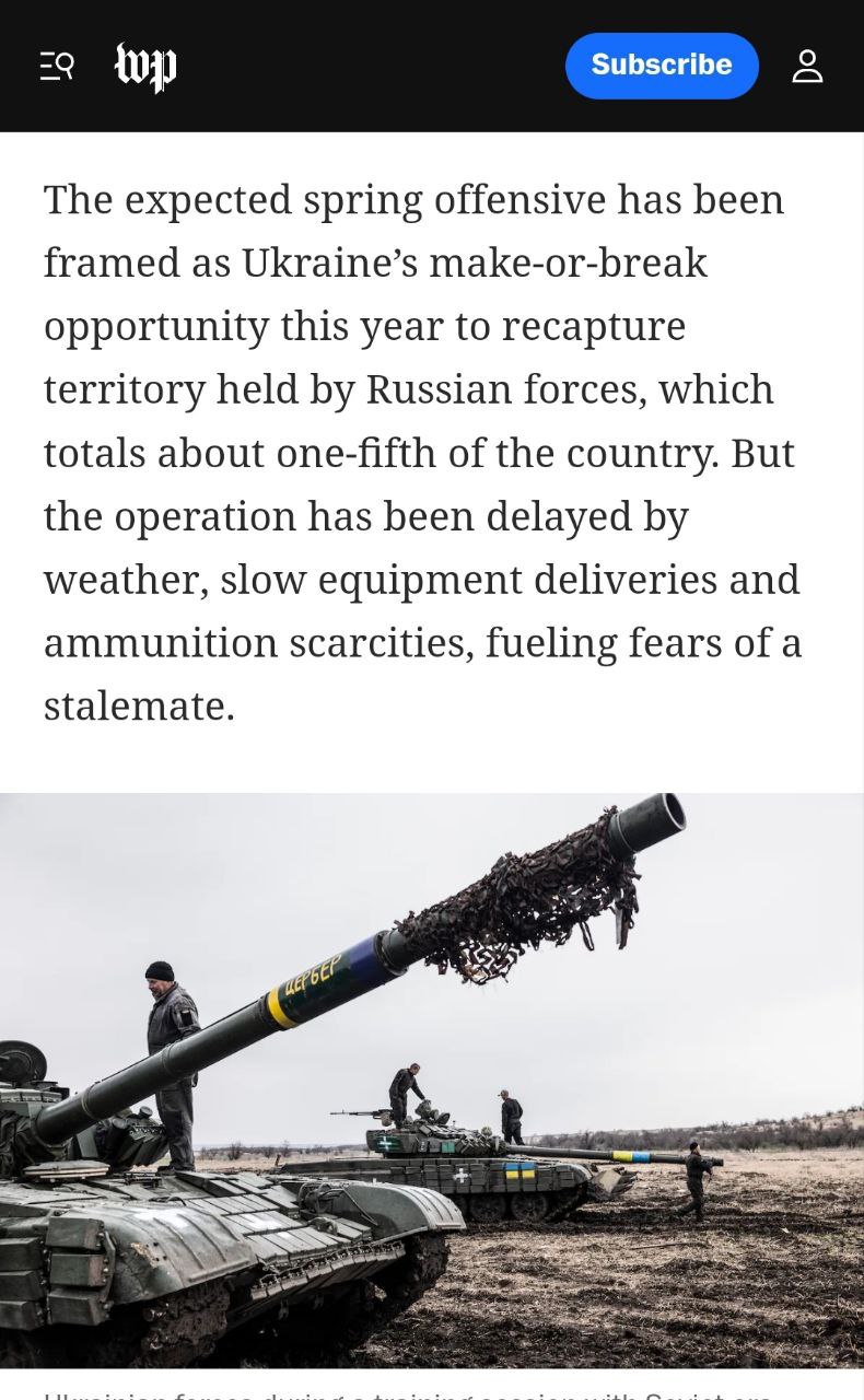Еще больше осложняет запланированную контратаку утечка американских разведывательных документов." В том числе многих подробностей о состоянии ВСУ и их возможностях, о недостатках в средствах ПВО, которые могут заставить командование изменить планы", - пишет Washington Post.