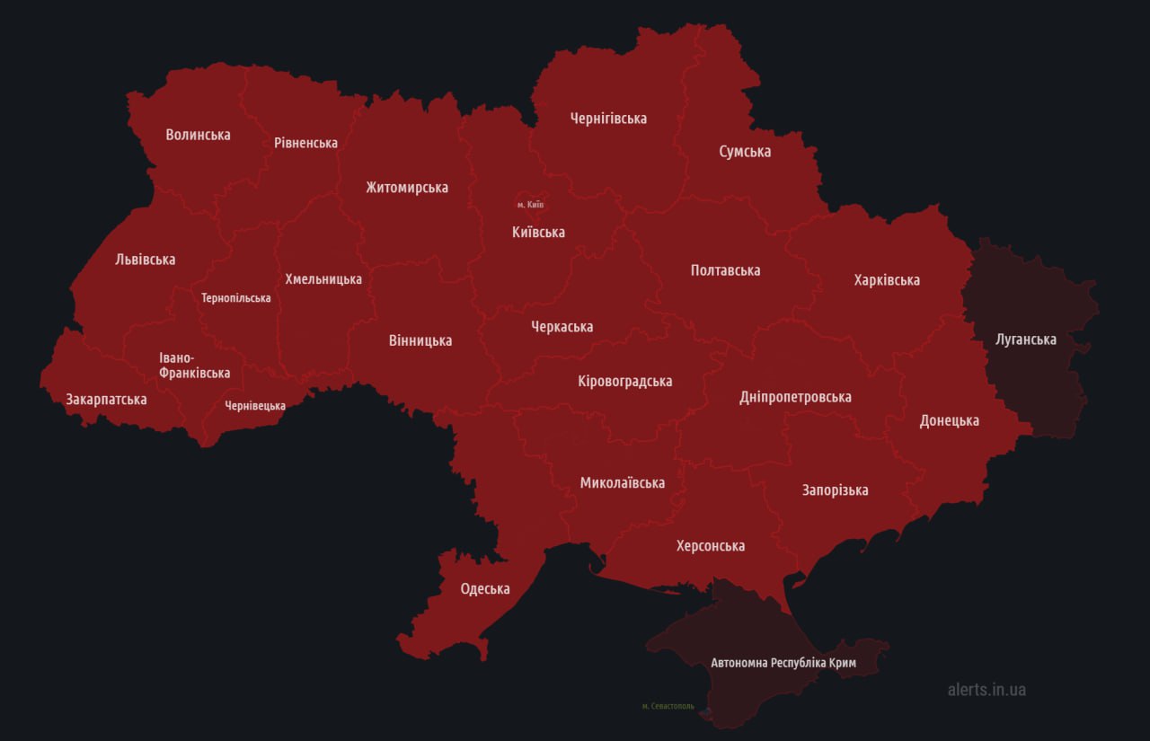 11.30 Воздушная тревога в Киеве, а также в трёх областях - Киевской, Полтавской и Черкасской.