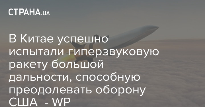 Китай успешно испытал и развернул гиперзвуковую ракету большой дальности, которая, по-видимому, способна преодолевать противоракетную оборону США.
