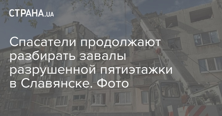 В Славянске Донецкой области продолжаются разборы завалов жилого дома, разрушенного в результате ракетного удара.