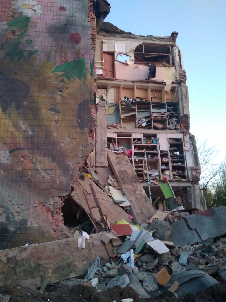 Судя по характерному муралу с подсолнухами, пострадавшее здание - школа №7. Изображение подсолнухов появились на здании в 2019 году.