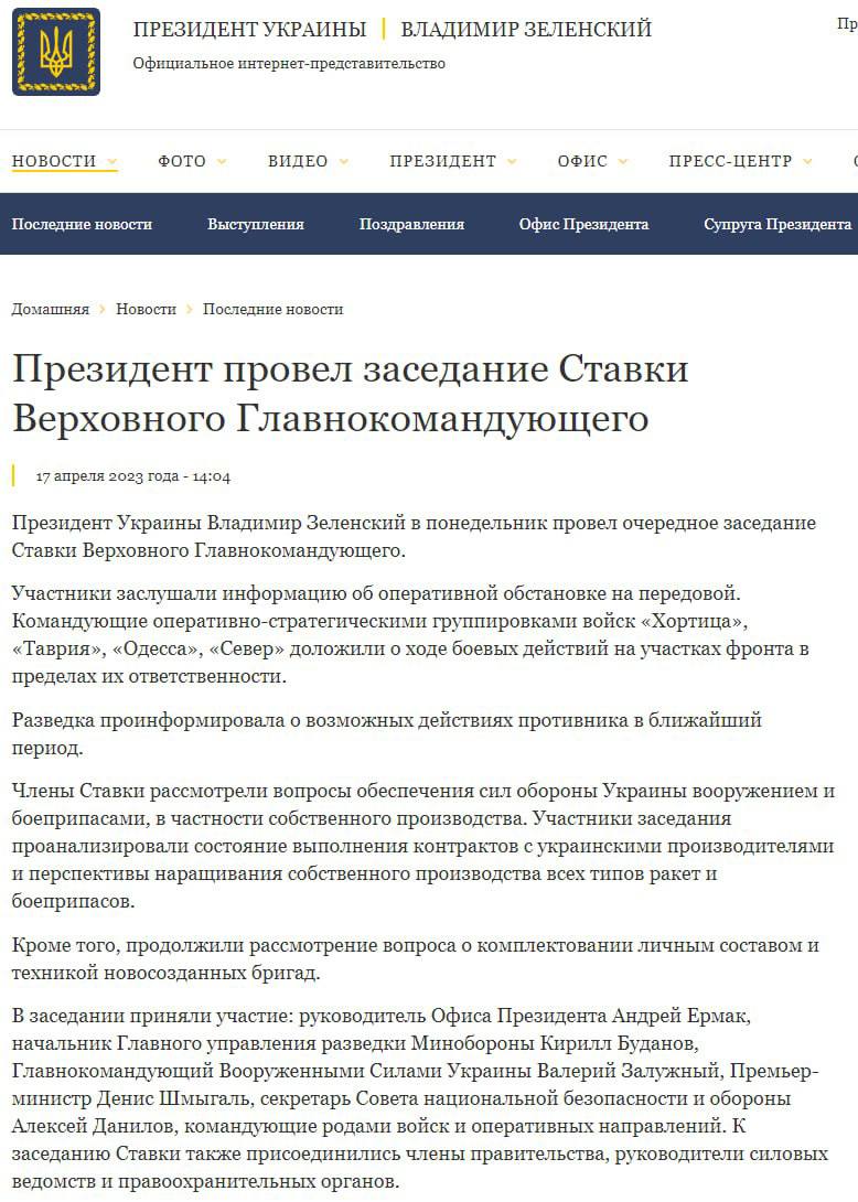 3. Сообщил о подготовке к очередному "Рамштайну" и выразил надежду на выделение оружия, соответствующего амбиционным задачам Украины на поле боя. Косвенно высказал недовольство тем, что Запад не выделяет необходимые для наступления виды вооружений.