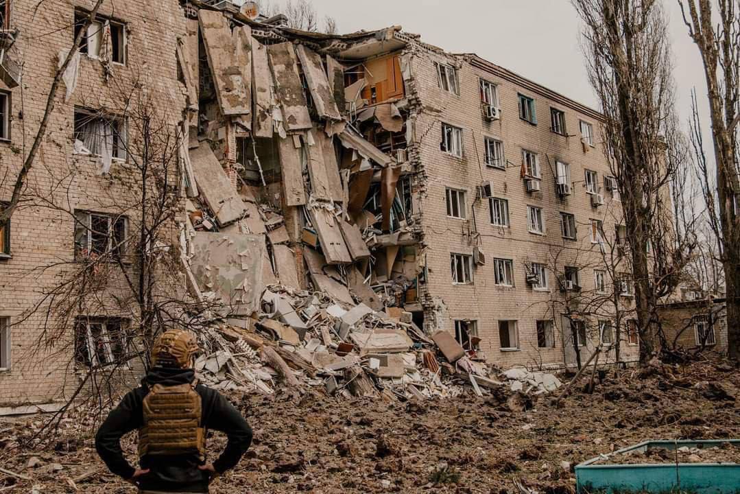 19.30 Видео полностью разрушенной многоэтажки в Бахмуте, который продолжается оставаться эпицентром боевых действий.