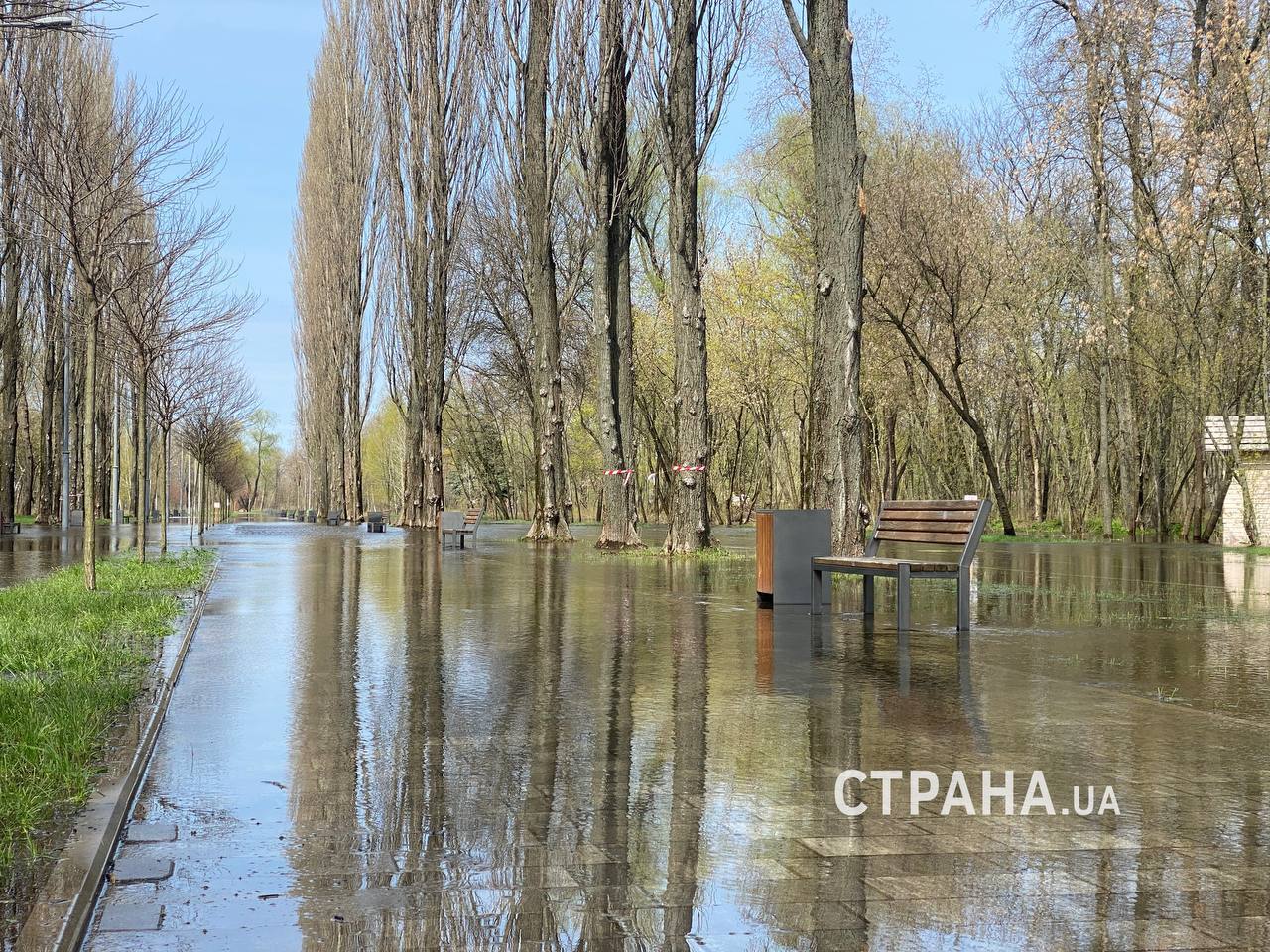 Под водой также оказались площадки для паркинга автомобилей. Некоторые киевляне на таких парковках устроили целое развлечения катаясь здесь на автомобилях. А кто-то даже ловит рыбу.