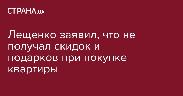 Лещенко заявил, что не получал скидок и подарков при покупке квартиры
