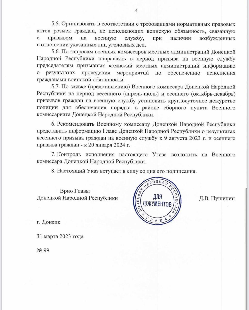 11.25 Вслед за "ЛНР" свой "указ" о призыве граждан 1996-2005 годов рождения на военную службу в 2023 году издали и в "ДНР".