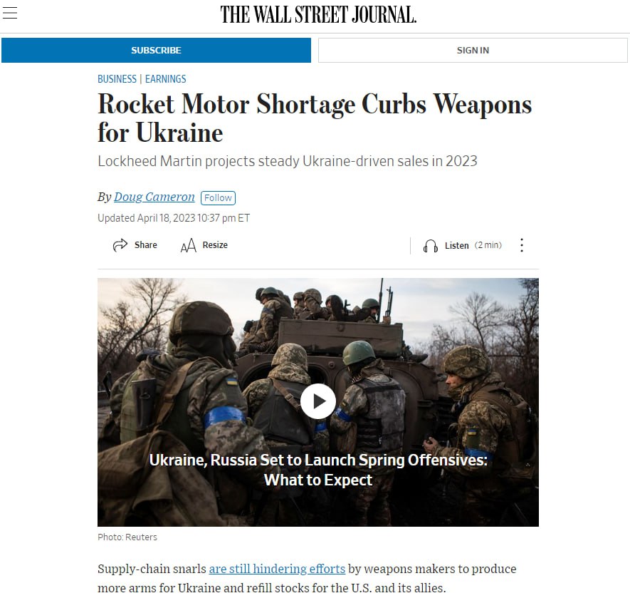 Компания Lockheed Martin Corp. 18 апреля заявила, что дефицит ключевых компонентов, таких как ракетные двигатели для GMLRS и других ракет, продолжает препятствовать усилиям по наращиванию производства.