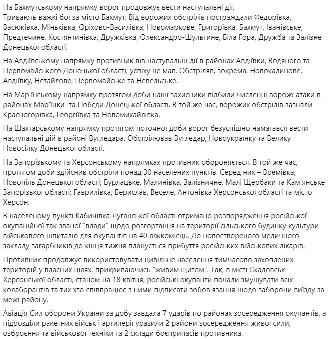 2. Основные усилия враг сосредоточил на ведении наступления на Лиманском, Бахмутском, Авдеевском и Марьинском направлениях. За прошедшие сутки ВСУ отразили там более 60 атак. Самые ожесточенные бои ведутся за Бахмут и Марьинку.
