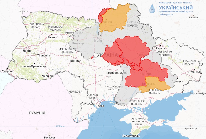 Укргидрометцентр предупредил о росте уровня воды в реках ряде регионов. В Черкасской, Полтавской, Кировоградской, Днепропетровской объявлен красный уровень опасности. В Запорожской, а также Черниговской - оранжевый.