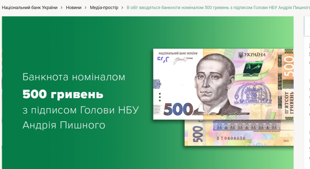 В Украине в оборот вводят 500-гривневые банкноты с подписью главы Нацбанка Андрея Пышного. Этими банкнотами будут заменять старые, изношенные купюры.