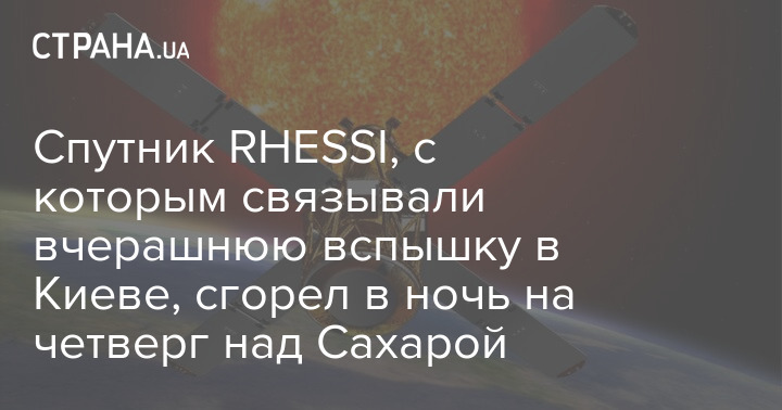 Спутник RHESSI, с которым связывали вчерашнюю вспышку в Киеве, сгорел в ночь на четверг над Сахарой
