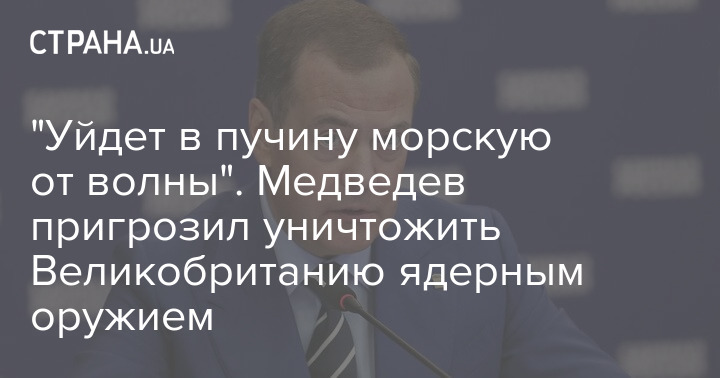 Заместитель председателя Совета безопасности РФ Дмитрий Медведев пригрозил утопить Великобританию "в морской пучине".