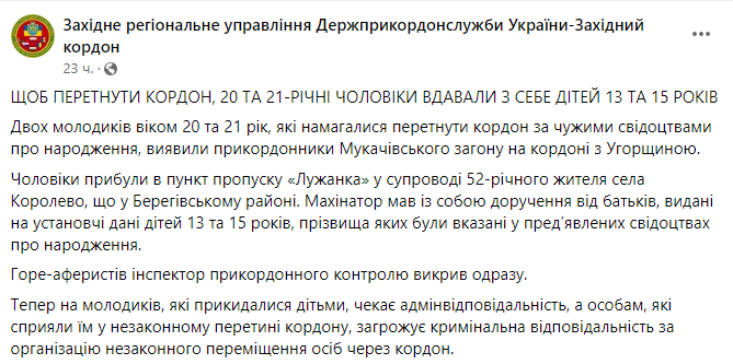 На Закарпатье двое мужчин выдали себя за детей, чтобы выехать за границу. Фото