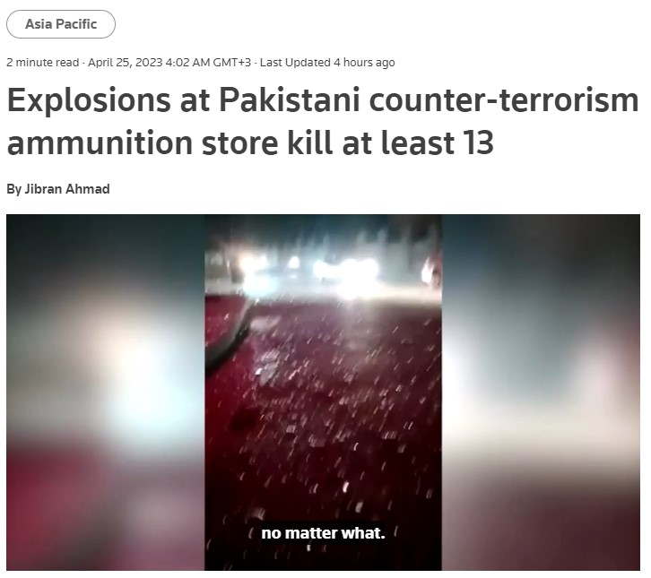 В Пакистане на северо-западе долины Сват на складе с боеприпасами управления по борьбе с терроризмом прогремели два взрыва. В результате погибли по меньшей мере 13 человек, более 50 получили ранения.