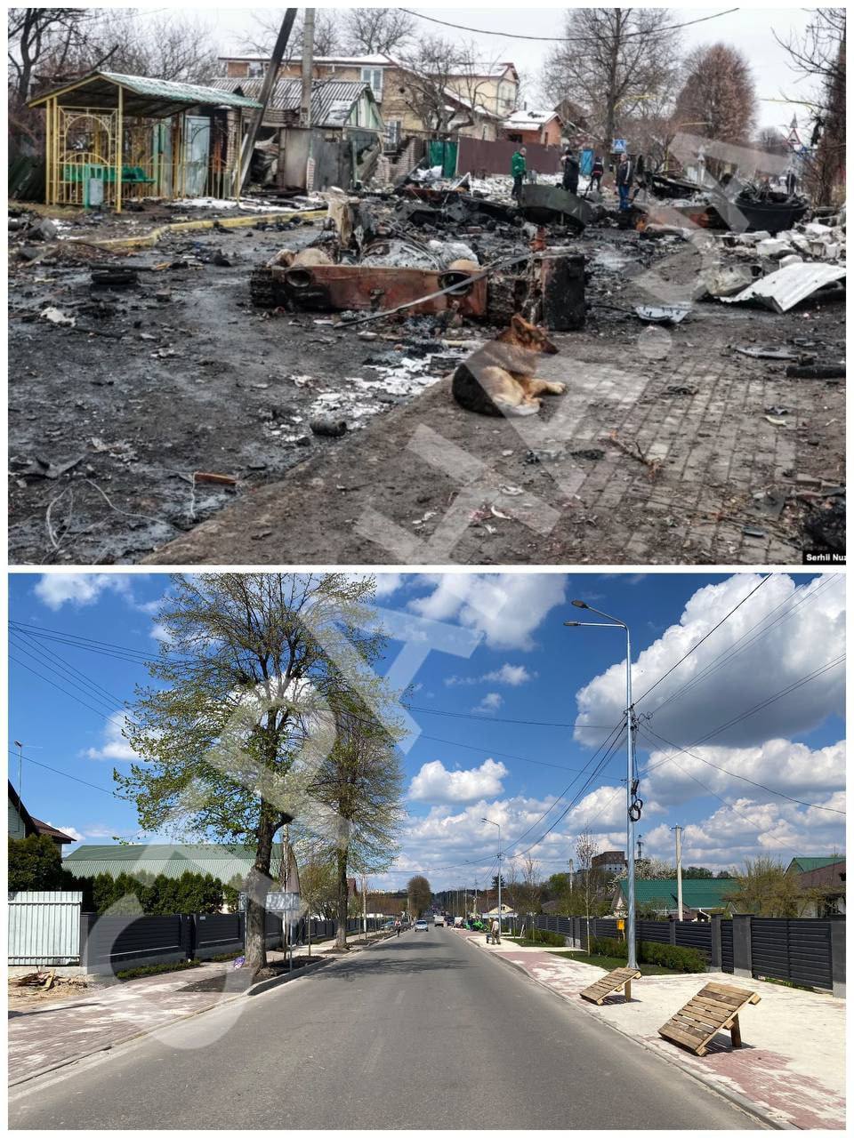 Несколько недель назад в Буче закончили реконструкцию улицы Вокзальная (та самая улица, кадры с разрушениями на которой в марте-апреле прошлого года обошли весь мир). Восстановлено 112 домов, 14 из которых построены с нуля. Основной фронт работ произведен на деньги американского фонда Говарда Баффета. Также выделяли деньги несколько стран Европы и Япония.