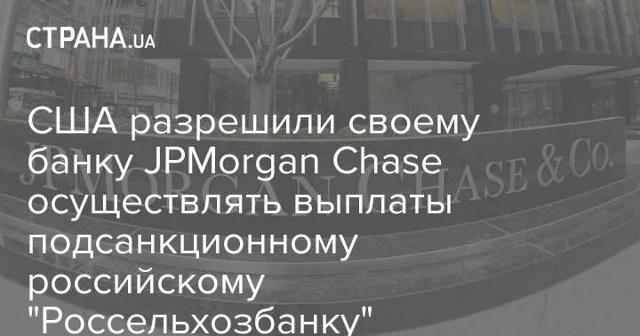 Американские власти разрешили банку JPMorgan Chase осуществлять выплаты подсанкционному российскому "Россельхозбанку" в интересах устранения проблем с экспортом российского зерна.