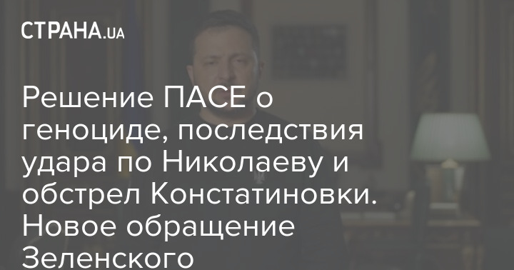 Решение ПАСЕ о геноциде, последствия удара по Николаеву и обстрел Констатиновки. Новое обращение Зеленского