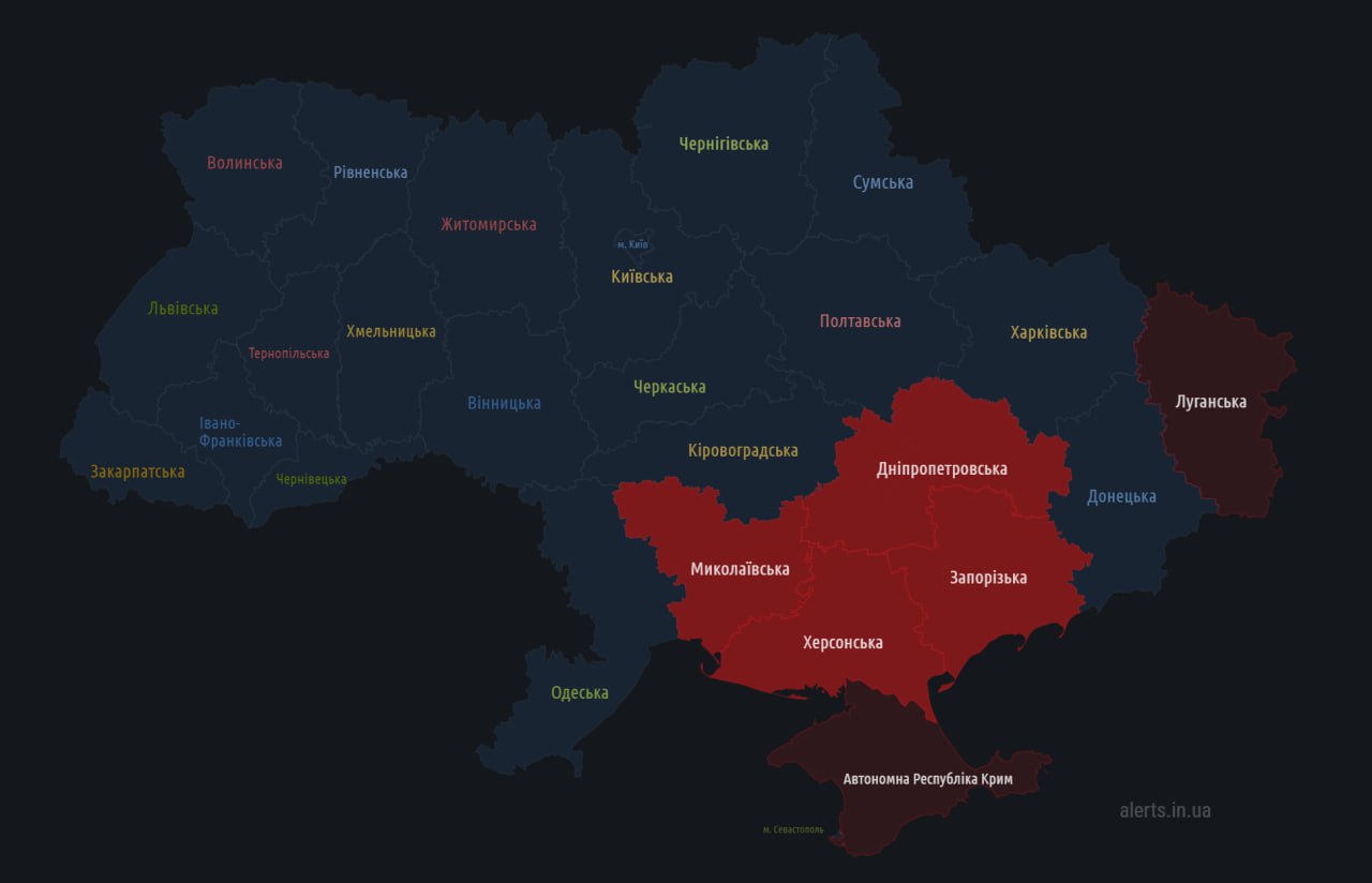 09.40 Воздушная тревога также объявлена в Запорожской и Днепропетровской области.