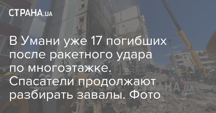 В Умани достали тела уже 17 погибших в результате ракетного удара по многоэтажке. Продолжается спасательная операция.
