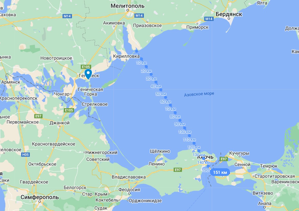 Кроме того, пока остается под вопросом, чем ВСУ будут бомбить Керченский мост, если дойдут до Крыма и займут побережье Азовского моря в Запорожской и Херсонской областях. Имеющиеся сейчас у Киева ракеты для "Хаймарсов" туда не добьют, поскольку ближайшее расстояние до моста от побережья - около 150 километров при дальности 80 км у ракет GMLRS.