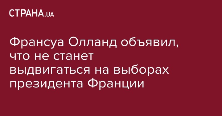 Действующий французский президент Франсуа Олланд не будет кандидатом на предстоящих в 2017 году президентских выборах во Франции, который пройдут в апреле 2017 года.