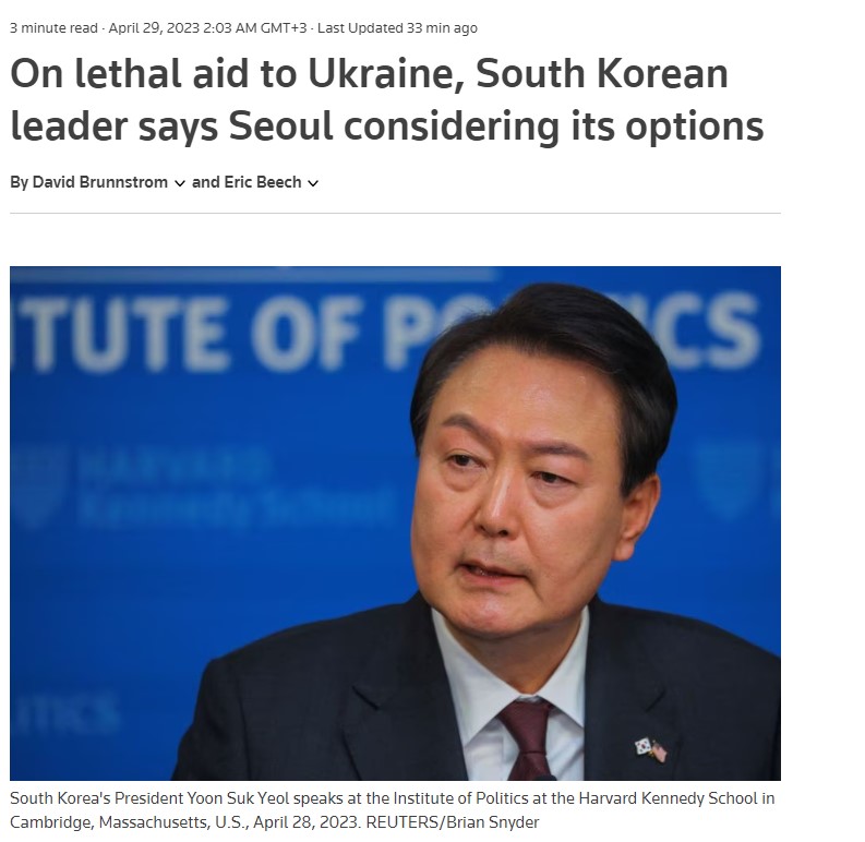Южная Корея следит за ситуацией, которая происходит на поле боя в Украине и рассматривает соответствующие меры, когда речь идет о летальном оружии для Киева.