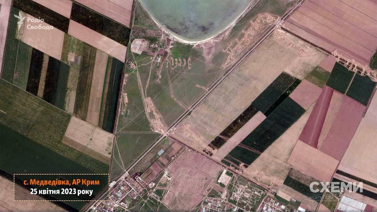 Также со спутника видно, что в Медведевке появились новые окопы.