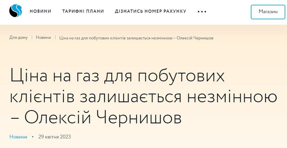 "Цена на газ для бытовых клиентов остается неизменной. Это решение было принято с учетом военного положения и экономической ситуации в Украине. При всей сложности ситуации мы продолжим держать цену топлива для наших граждан на довоенном уровне", – заявил глава группы "Нафтогаз" Алексей Чернышев.