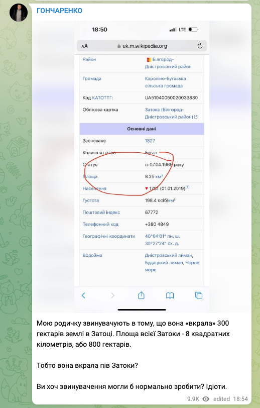 "Вчера задержали мою дальнюю родственницу и ее мужа депутата Одесского областного совета от партии "Евросолидарность". Моя родственница – многодетная мать. Четыре несовершеннолетних ребенка прямо сейчас находятся без мамы и отца", – написал Гончаренко в своем тг-канале.
