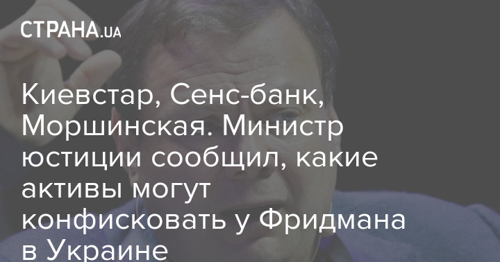 По словам главы Минюста Дениса Малюськи, вовлечение российского бизнеса олигарха в сотрудничество с военными и силовиками РФ может стать основанием для конфискации активов, опосредованно принадлежащих Фридману в Украине. Речь идет о компаниях "Киевстар", "Альфа-банк" (ныне "Сенс-банк"), а также производителях минеральной воды "Моршинская" и "Миргородская".