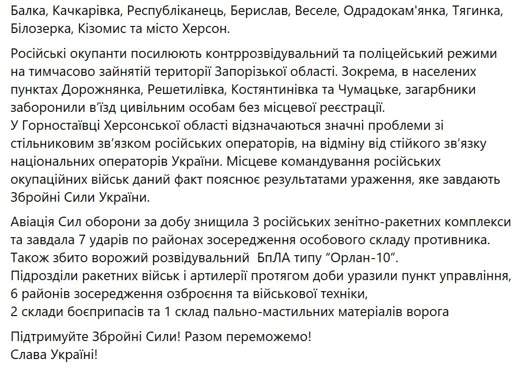 За минувшие сутки противник нанес 19 ракетных ударов. Сбито 15 ракет типа Х-101 и Х-555. Также отражена 41 наземная атака противника.