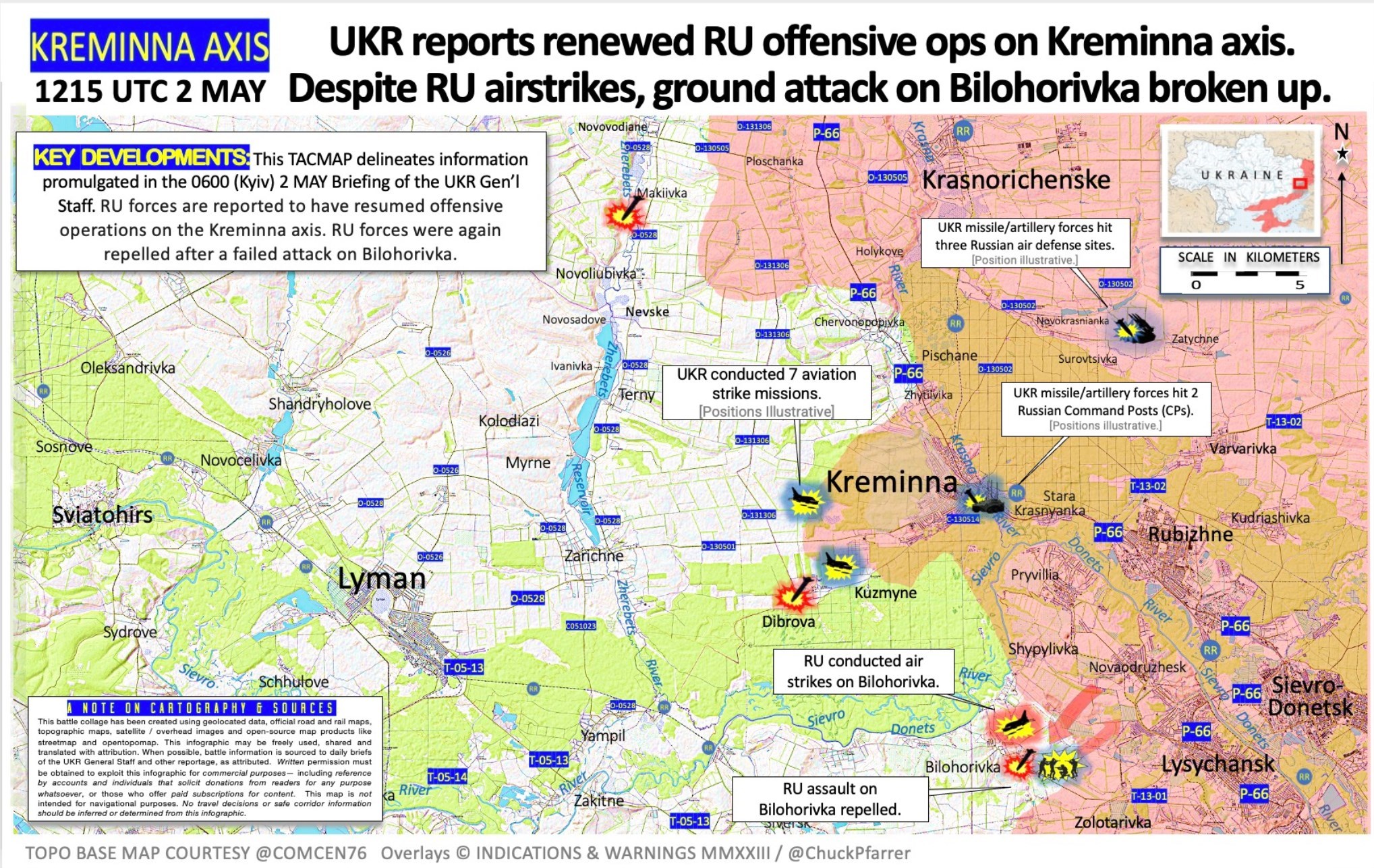 Генштаб сообщал, что под Кременной противник наступал в районах Новоселовского и Белогоровки. По Белогоровке, Григоровке и Спорному наносились авиаудары.