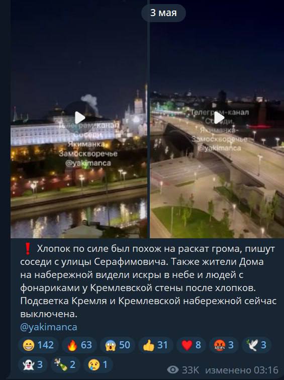Первые сообщения об атаке появились в московских телеграм-каналах около трех часов ночи, а днем информацию подтвердил Кремль.