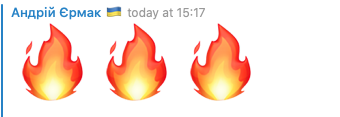 К слову, глава Офиса президента Андрей Ермак некоторое время назад разместил у себя в телеграм-канале огоньки пожара (как бы подтверждая "украинский след" в атаке). Но потом почти моментально их убрал.