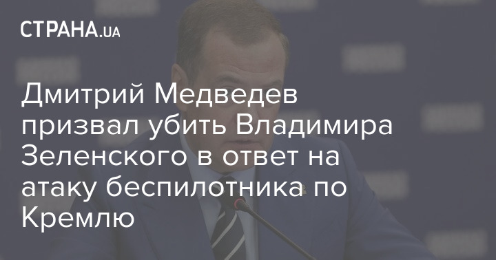 Дмитрий Медведев призвал убить Владимира Зеленского в ответ на атаку беспилотника по Кремлю