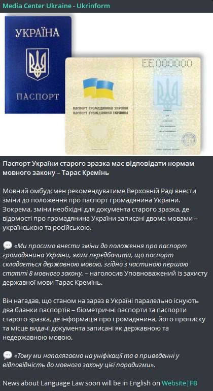 Языковой омбудсмен Тарас Креминь в комментарии "Стране" объяснил, что речь не идет о том, чтобы изъять паспорт.