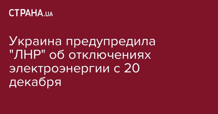 Директор "Луганского энергетического объединения" Владимир Грицай заявил, что в 20-х числах декабря переток электроэнергии, который происходит с Счастьинской ТЭС в сторону Луганска, будет отключен. Об этом сообщает "Громадське Радио".