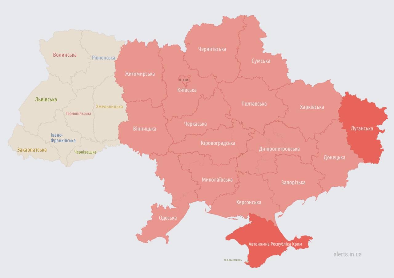17.20 Воздушная тревога на большей части Украины.
